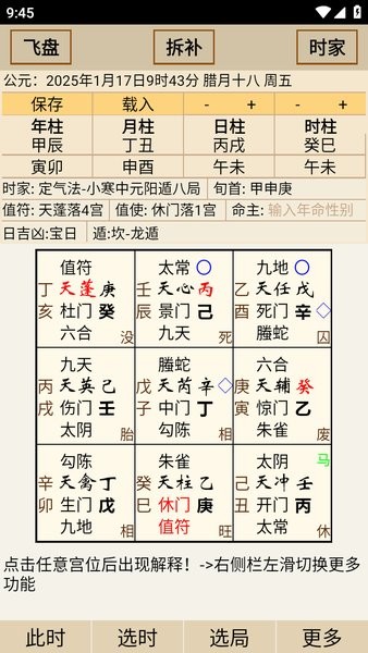 排盘核心严格遵循古籍记载的置闰、拆补等规则,最大程度还原了传统奇门遁甲的推演逻辑,保证了分析结果的可靠性与学术价值。