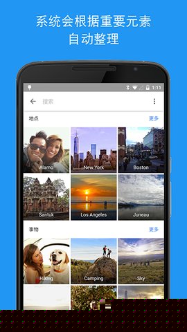 运用先进的机器学习算法,自动识别人物面孔、宠物、风景、文档等元素,并据此创建分类相册。