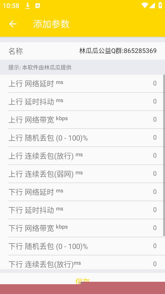 在主界面找到参数配置管理入口,进入后选择新增配置。为此配置命名,并详细设置带宽限制、网络延迟、丢包概率等参数,完成后保存即可在测试时选用此自定义方案。