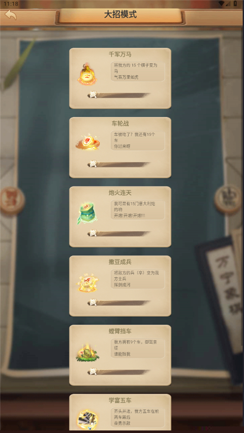 象棋大招版是一款融合传统策略与创新机制的智力竞技产品,在经典象棋规则基础上引入技能释放系统,为千年棋艺注入全新活力。产品保留楚河汉界的运筹帷幄精髓,更通过千军万马、烽火连天等特色模式,构建出兼具深度与观赏性的对弈体验。内置的智能分析模块与海量学习资源,能够帮助各水平段使用者持续精进棋艺,在方寸棋盘间感受谋略交锋的永恒魅力。