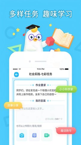 提供一系列设计科学、形式多样的实践性任务与打卡活动,涵盖阅读、锻炼、劳动等多个维度,系统化地助力学生良好习惯与核心素养的培育。