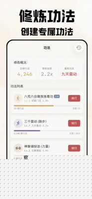 构建了一套完整的修真境界体系,用户的运动量直接关联角色灵力积累与境界突破,实现健康行为与游戏进程的深度绑定。