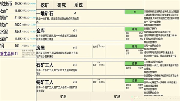 招募拥有特殊技能与背景故事的传奇矿工,每位角色都能为整个生产线带来质的飞跃,收集与培养过程充满惊喜。