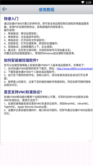 协通XT800远程控制是一款基于移动设备实现跨平台远程桌面连接的专业工具,通过自主研发的P2P协议,支持在安卓手机或平板上快速访问并操作远端计算机,完成文件管理、文档编辑、系统运维等任务,无需复杂设置且完全免费,适用于个人远程办公与企业IT维护等多种场景。