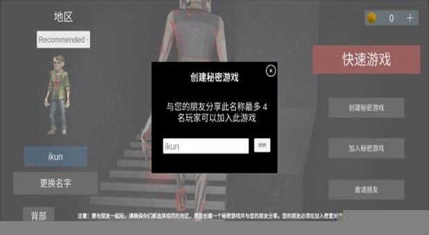 4、不过注意要确保右上的地区要和联机的人相同,然后在密室的对话框中输入相同的房间名称便可以进去了!