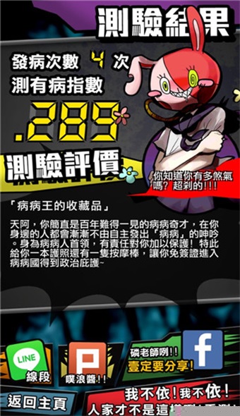 2、点击开始测验,测试游戏中自己的有病指数。