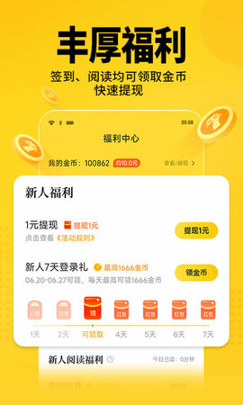 七猫免费小说是一款集海量正版图书资源与趣味互动体验于一体的移动阅读软件,汇聚了网络文学、经典名著、热门出版等多元内容,为用户打造一个既免费又优质的数字化阅读空间。其核心在于将阅读行为与轻量级收益机制相结合,让用户在享受文字魅力的也能通过日常参与获得额外回馈,重新定义了移动端休闲阅读的价值。
