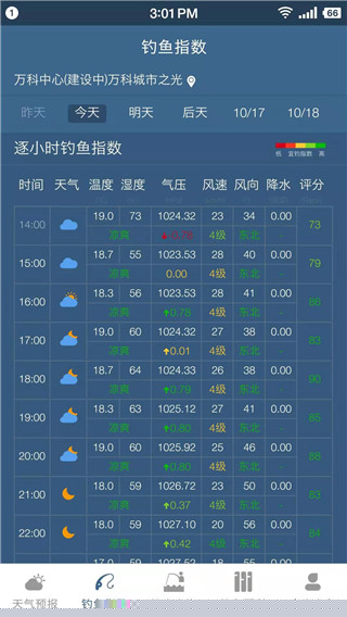 提供未来14天逐小时天气预报及钓鱼指数,时间分辨率高,空间定位精准,帮助用户把握一天中最佳的垂钓窗口期。