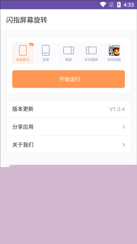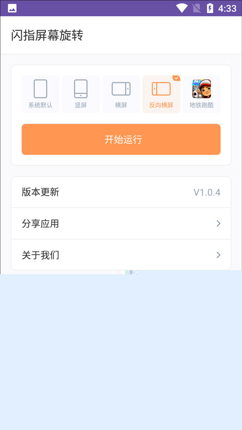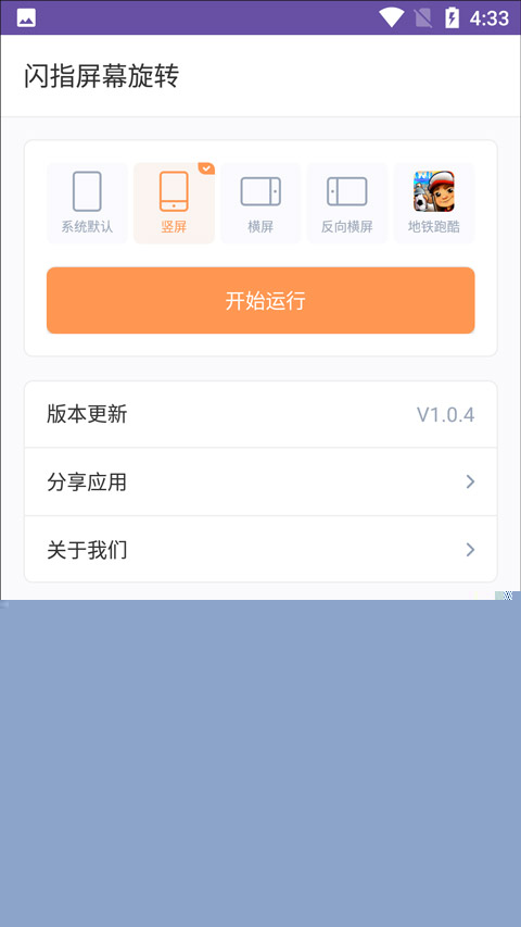 闪指屏幕旋转是一款专为地铁跑酷等横版跑酷游戏设计的屏幕方向管理工具,其核心功能在于突破设备默认显示限制,实现游戏画面的强制横向显示。通过调整屏幕方向,该工具能够为提供更宽广的游戏视野,优化操作空间,从而在高速移动的游戏中获得更精准的控制体验。其设计理念围绕简化操作流程,用户无需深入系统设置,即可快速完成屏幕方向的切换与锁定,有效解决了部分游戏因适配问题无法自动横屏的痛点,是一款专注于提升移动游戏沉浸感与操作性的实用型辅助软件。