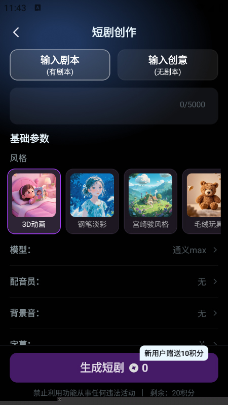 依托先进的生成式AI模型,能够根据用户提供的简单主题或关键词,自动构建包含起承转合的完整故事框架与详细台词。