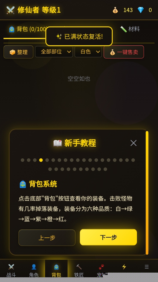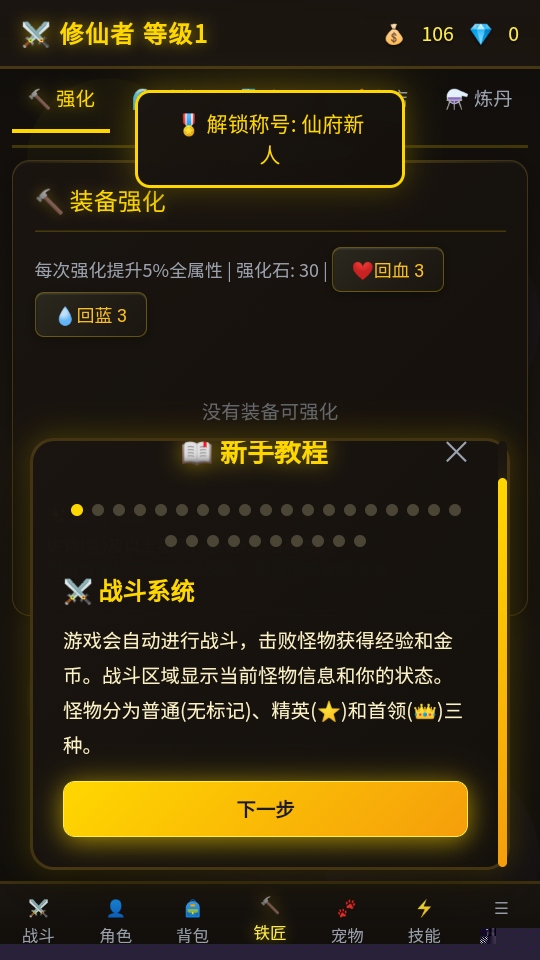 核心体验建立在智能化的自动战斗与离线成长系统之上。角色会自动进行战斗与资源收集,即使退出应用,收益计算也不会停止。这种设计完美契合现代生活的碎片化节奏,让修为提升成为一种无压力的自然积累。