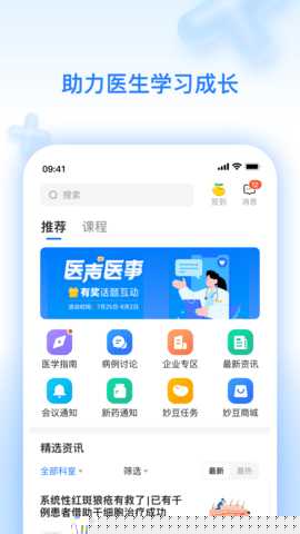 应用内汇聚行业前沿资讯、经典病例讨论与在线培训课程,构建医生专属的学习社区,促进同行交流与技能提升,满足医生终身学习的需求。