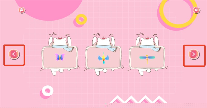 2、左右滑动,挑选一款逗猫游戏:小猫抓鱼、猫捉老鼠、拍虫子、狗尾巴草、毛绒球、红外线模拟器等。