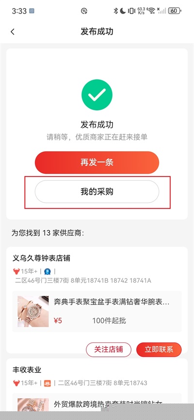 3、发布成功后,可点击"我的采购"查看已发布的采购需求,同时平台会匹配对应的供应商供对接。
