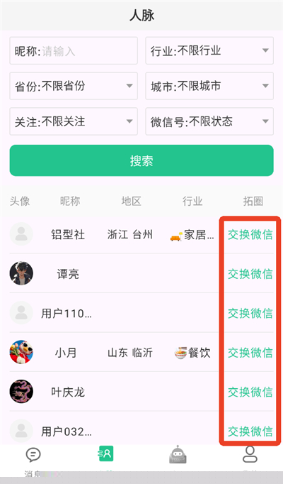 4、遇到心仪的客户,就能点击有右边的【交换微信】开始聊天了!