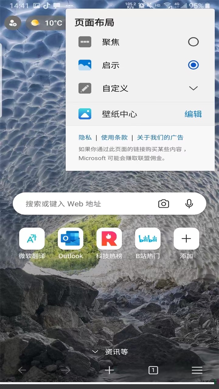 1.进入edge浏览器主页后点击下方页面
