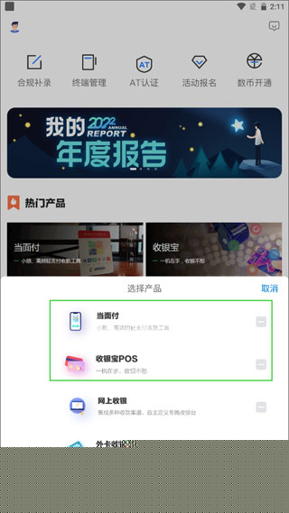 根据商户的性质和需求,可以选择当面付和收银宝的产品组合发起进件申请。