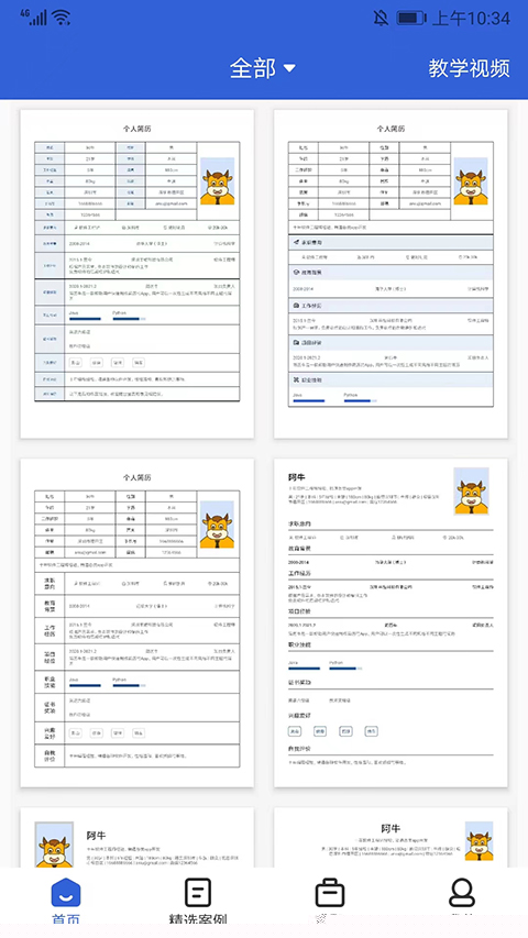 1、打开简历牛app,在【首页】界面,选择上方【全部】选项,