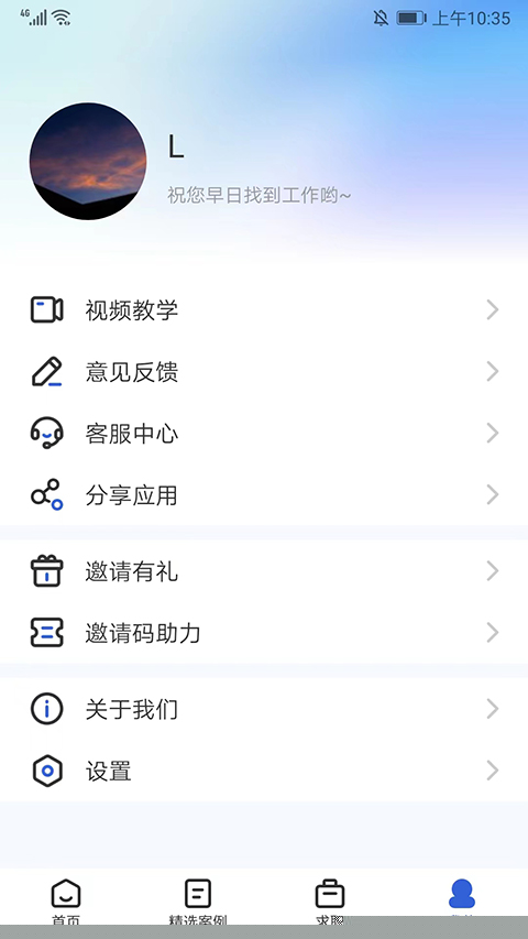 1、打开简历牛app,在【我的】界面,选择【邀请有礼】选项,