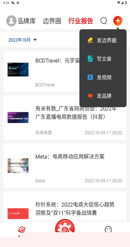 4、用户还可以查看当前位置的品牌库和行业报告等信息,且还边界圈功能,用户可以在这里进行沟通交流
