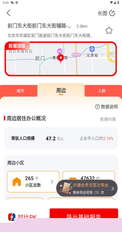 3、结果出来后,用户可以选择与其他位置的调研结果进行pk,筛选最为合适的结果,对调研结果满意后就可以导出pdf保存了