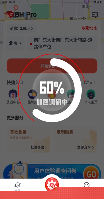 2、选择好需要调研的地址后,点击开始调研,稍等10s左右就可以出现结果