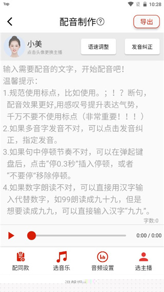 选择正确的音色是关键。推广儿童产品可选择活泼明亮的音色,而介绍高端产品则适合沉稳大气的音色。