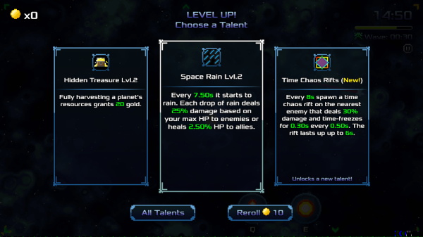 上手初期被其绚丽的太空画面和刺激的波次战斗吸引,深入玩下去才发现构筑搭配的深度令人着迷。每次失败都忍不住立刻开始新一轮,想试试不同的天赋组合会带来怎样奇妙的化学反应,真正做到了易于上手,难于精通,在手机上也实现了不逊于端游的策略操作感。