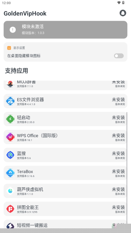 请确认在LSPosed等管理器中,已正确为软件启用GoldenVipHook模块,并尝试重启软件或手机,确保注入生效。