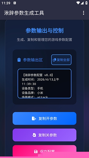 用户选定目标设备和网络场景后,可一键生成全套参数,并支持快速复制,便于直接应用于测试或配置环节。
