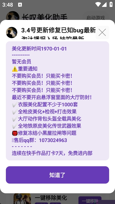 检查长叹美化助手是否为最新版本,并确认其支持的和平精英游戏版本号。