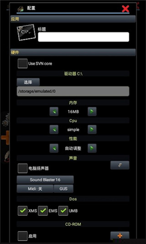 将游戏文件(如.zip, .iso等)放入手机存储的任意目录。启动Magic DosBox后,在主界面点击+号创建新配置。