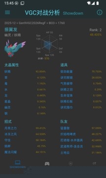 针对VGC双打对战的特性,专门拆解了如太晶化属性选择、招式搭配共现率等关键竞技维度,帮助使用者洞察核心战术脉络。