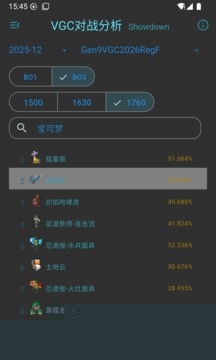 VGC对战分析工具是一款专为宝可梦系列游戏设计的专业数据辅助软件,其核心数据直接来源于官方认证的竞技赛事对局记录,能够精准反映当前赛季的主流战术生态与强度趋势,为训练家的队伍构筑、技能选择以及临场决策提供科学、客观的数据支撑,所有分析结果均通过可视化图表清晰呈现,避免了主观臆断,基础查询功能完全免费且无广告干扰,高级统计分析则提供了付费解锁的深度选项。