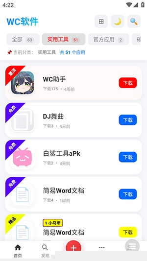 由于iOS系统的封闭性,其应用安装严格限制于App Store,WC资源的主要服务对象是安卓用户,提供直接的APK文件下载。