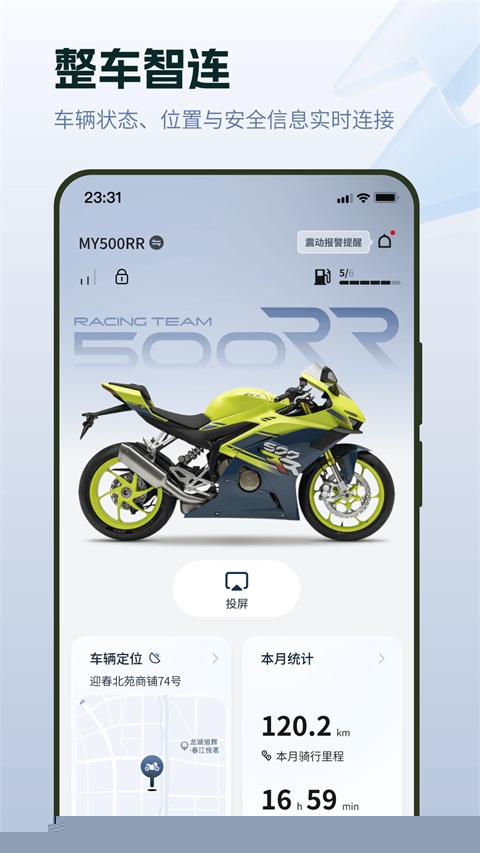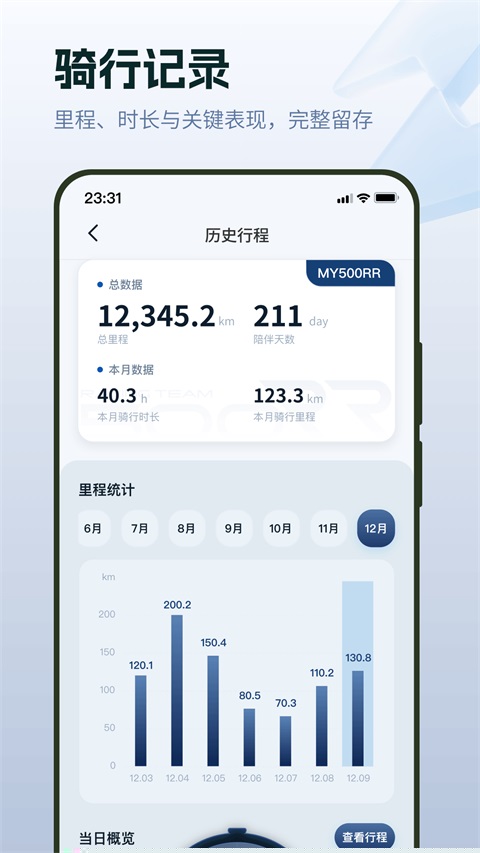 日常使用聚焦于状态掌控与行程管理。主页面清晰展示续航里程、车辆位置等关键信息,远程指令可于此下达。所有骑行行为会被自动捕捉,形成包含路径、速度与里程的详细档案,支持随时回放与分析,让每次出行都有据可查。
