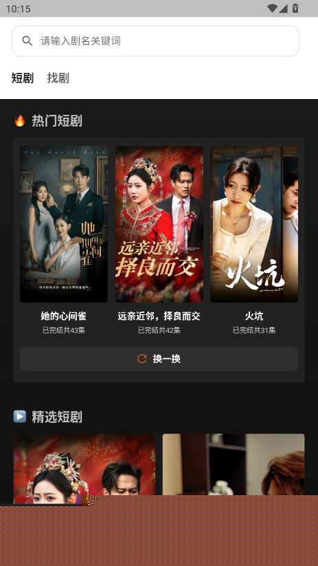 首页清晰划分为短剧与短视频两大核心模块,分别承载完整的剧集叙事与精炼的片段内容,满足用户不长的观看需求与内容探索欲望。