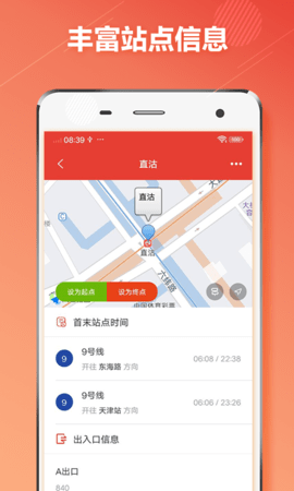 内置地图导航模块,实现从地铁出站口到周边具体目的地的无缝路线引导,完成出行一公里的闭环。