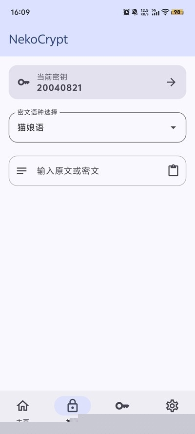 打开NekoCrypt后,输入自定义密码,输入文字内容。点击加密按钮,文字会立即转换成一串Emoji表情或其他字符。复制后发送给好友,对方需输入相同密码才能解密。我试过加密敏感聊天记录,过程流畅,解密后内容完整。