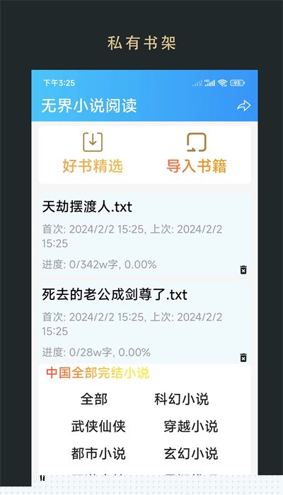 找到目标电子书文件(如TXT或EPUB格式),点击即可自动导入并加入书架,排版会自动优化。