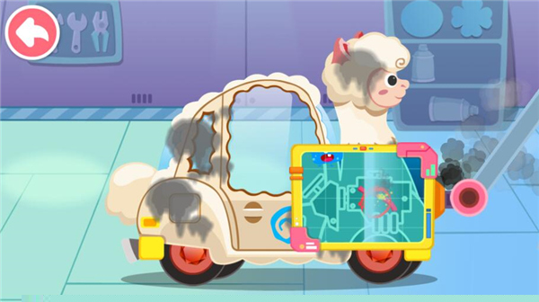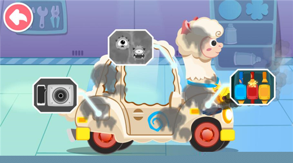 进入主场景后,会有一辆需要帮助的汽车驶入修理区。首要步骤是对车辆进行彻底清洁,使用虚拟的泡沫、水管和刷子,将车身上的泥点和污渍清理干净,恢复其光鲜外表。这一过程锻炼手眼协调,并培养爱护物品的意识。