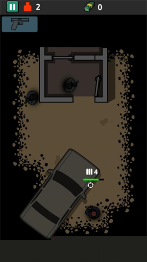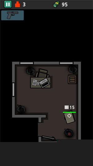 进入游戏后点击play按钮开始游玩,随后选择不同关卡进行挑战。每个关卡都有独特地图布局与敌人配置,从狭窄巷战到开阔阵地,需灵活利用掩体躲避攻击。按住屏幕让角色探身射击,滑动调整瞄准方向,松开后角色自动缩回掩体,此时敌人无法造成伤害。掌握这一节奏是生存关键,避免盲目暴露。