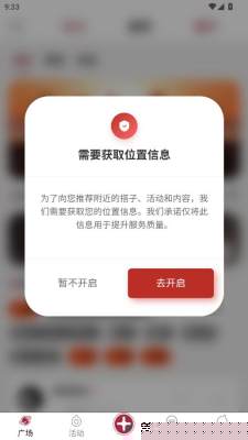 在手机设置中授权引力YOO访问位置权限,进入软件后点击首页定位图标,确认开启即可查看周边活动。