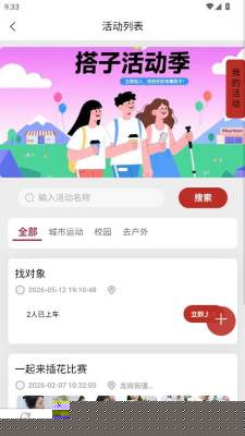 提供活动列表和报名功能,用户可查看时间地点并一键参与,避免错过机会。