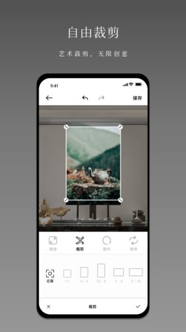在核心装裱功能之外,无缝整合了必要的图像基础处理工具,如精准裁剪、角度矫正、亮度对比度调节等,确保在单一工作流内完成从优化到成品的全过程。
