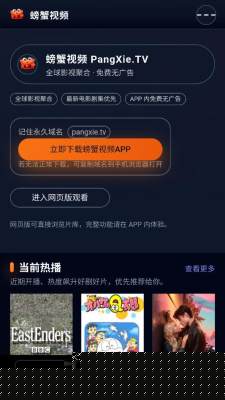 螃蟹视频追剧是一款专为影视爱好者设计的聚合型在线观影软件,提供海量高清影视资源与流畅无广告的观看体验,无需会员即可畅享热门电影、电视剧、综艺及动漫内容,通过简洁的交互方式让用户快速找到并播放喜爱的视频,整体操作直观且资源更新及时。