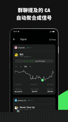 自动识别并收集群聊中出现的合约地址,聚合成清晰可回看的链上代币信号列表,方便按时间与来源做判断。