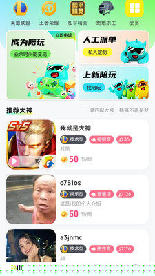 通过陪玩互动结识志同道合的,丰富游戏外的社交圈层。