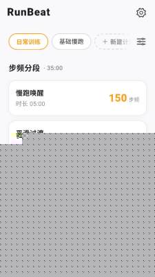 打开runbeat后,在主界面选择新建计划,根据提示设定热身、有氧巡航和间歇冲刺等阶段,每个阶段可自定义步频数值,如171或172 BPM,系统会自动生成无缝音乐。