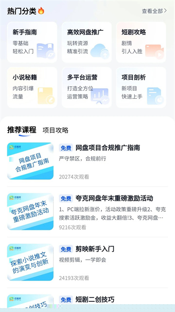 涵盖热点流量指导、短视频剪辑和产品转化培训。